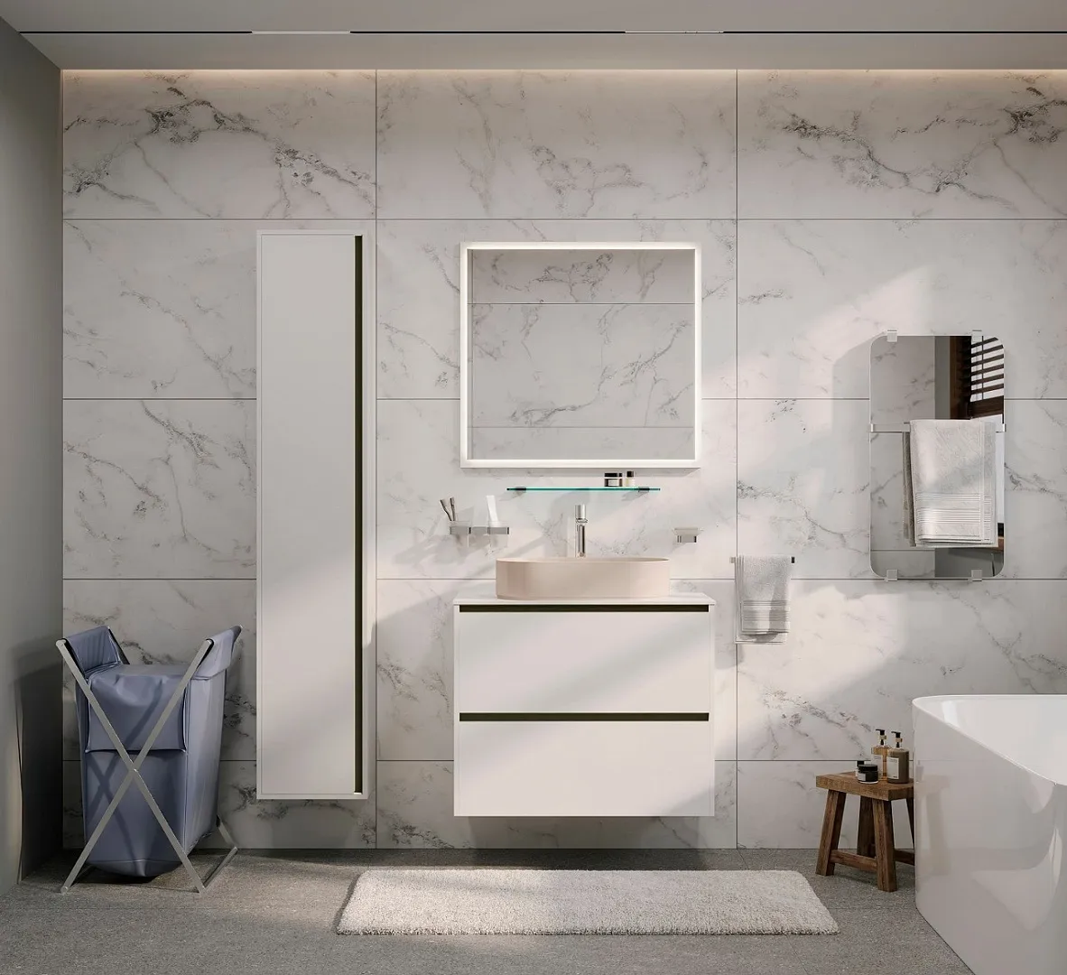 Характеристики товара Шкаф-пенал подвесной Allen Brau Activity 35 L с подсветкой белый/чёрный браш 1.34002.WM