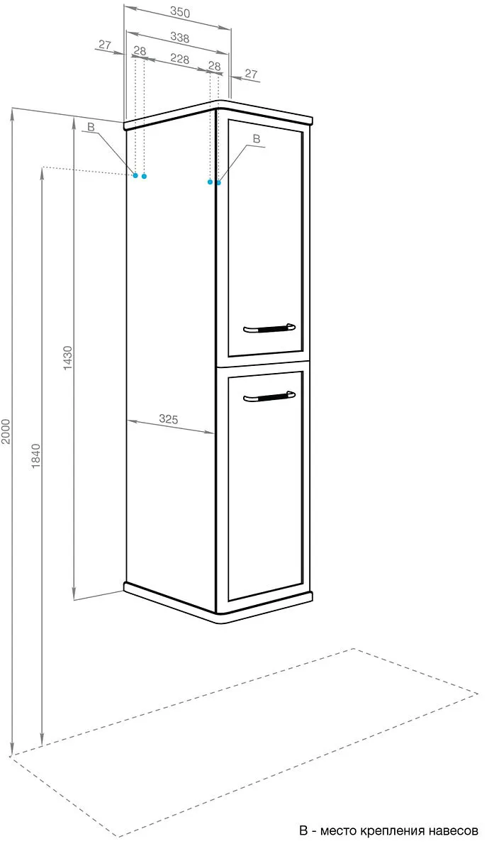 Характеристики товара Шкаф-пенал подвесной Aquaton Нео-Классика 35 белый камень 1A284603NCTG0