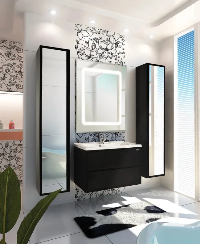 Характеристики товара Шкаф-пенал подвесной Aquaton Римини 35 зеркало/чёрный 1A234703RN950