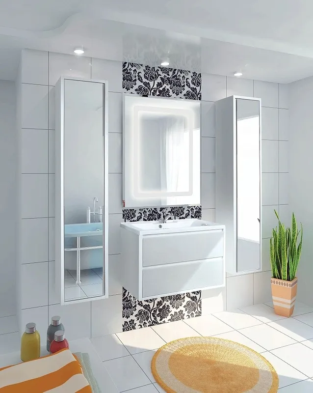 КОМПЛЕКТАЦИЯПолка стеклянная - 4 шт., Зеркальный фасад - 1 шт. (петли с интегрированной системой плавного закрывания), Регулируемый навес - 4
