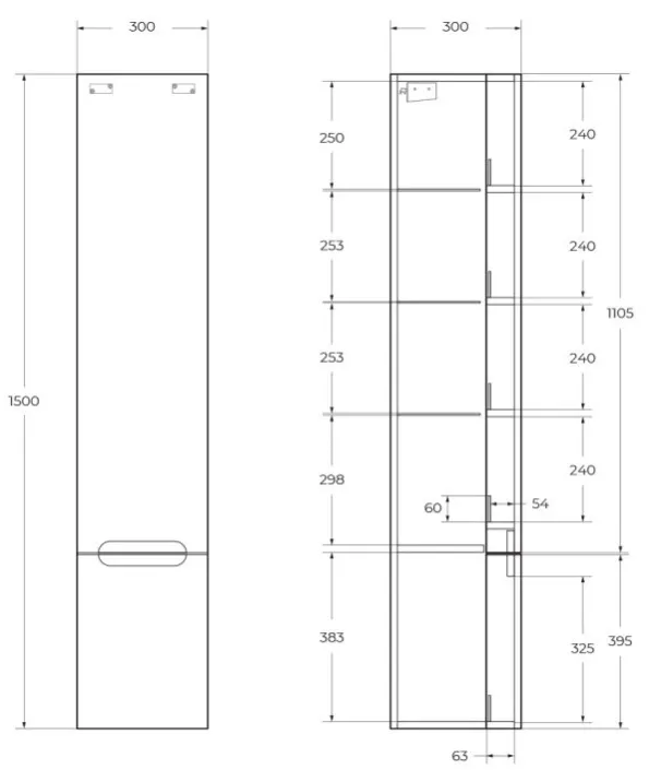 Характеристики товара Шкаф-пенал подвесной BelBagno ETNA-M 33 Bianco Lucido ETNA-M-1500-2A-SO-BL-L