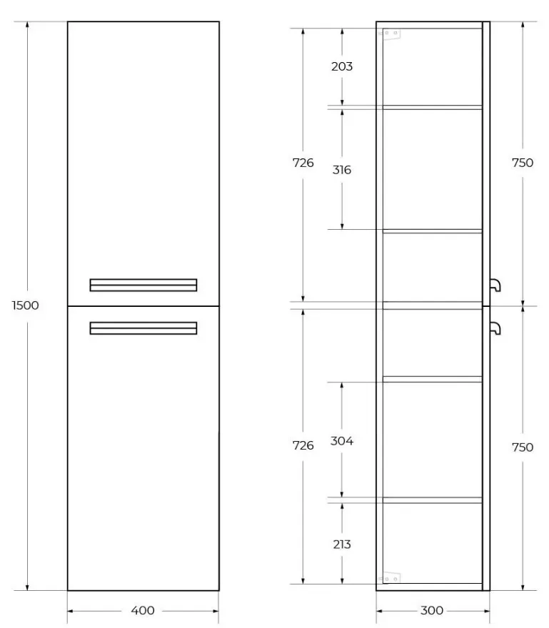 Характеристики товара Шкаф-пенал подвесной Cezares ECO 40 Grafito ECO-1500-2A-SC-GR-P