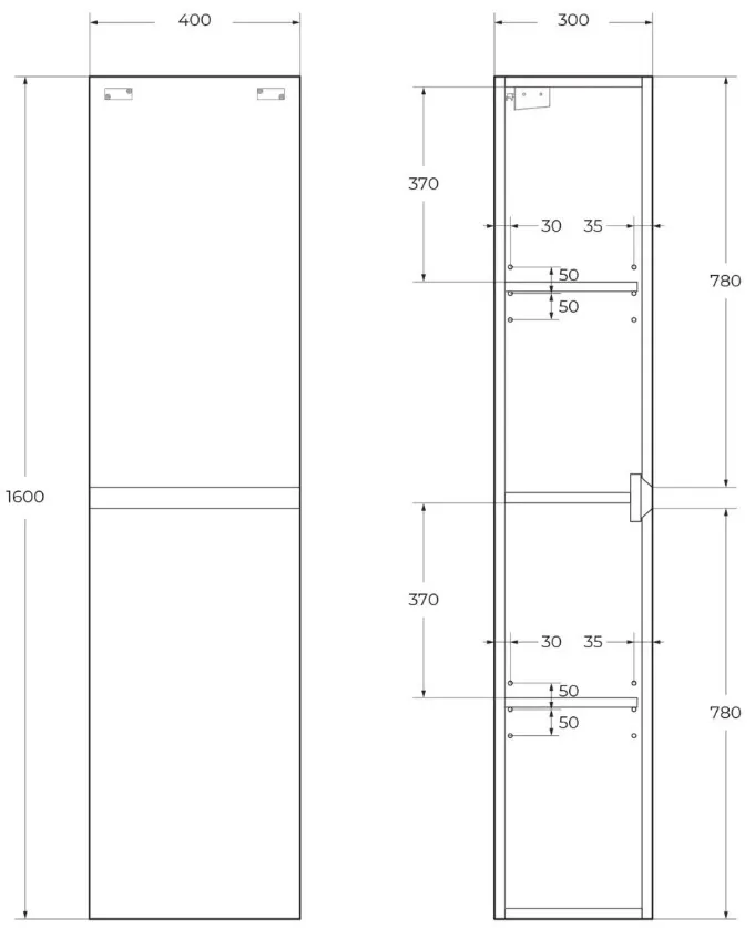 Характеристики товара Шкаф-пенал подвесной Cezares MOLVENO 40 Noce Chiaro MOLVENO-1600-2A-SC-NC
