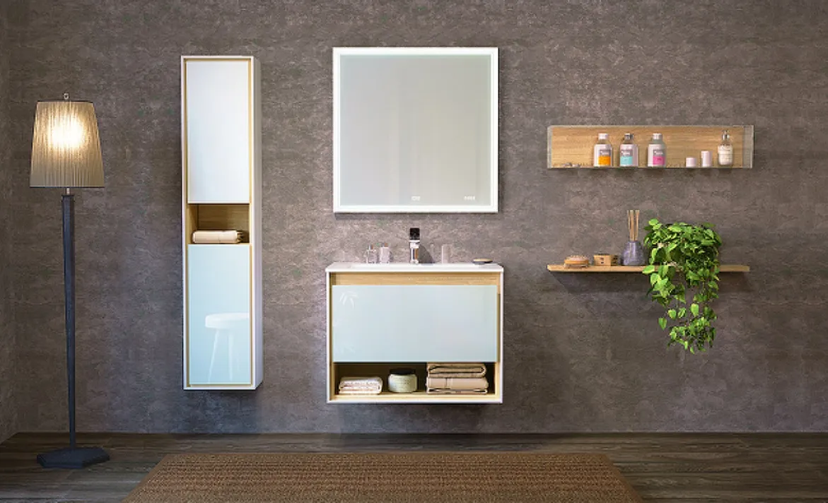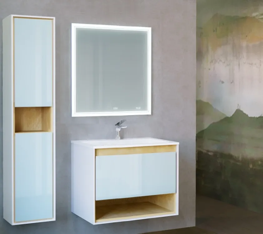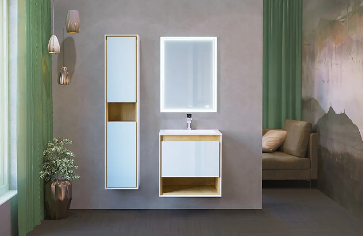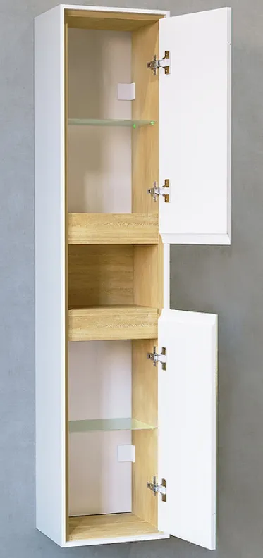 Шкаф-пенал подвесной Jorno Glass 32 белый/дуб Gla.04.150/P/W