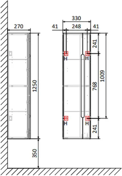 Характеристики товара Шкаф-пенал подвесной Jorno Shine 125 антрацит Shi.04.125/P/A