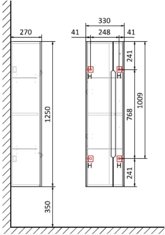 Шкаф-пенал подвесной Jorno Shine 33 белый Shi.04.125/P/W