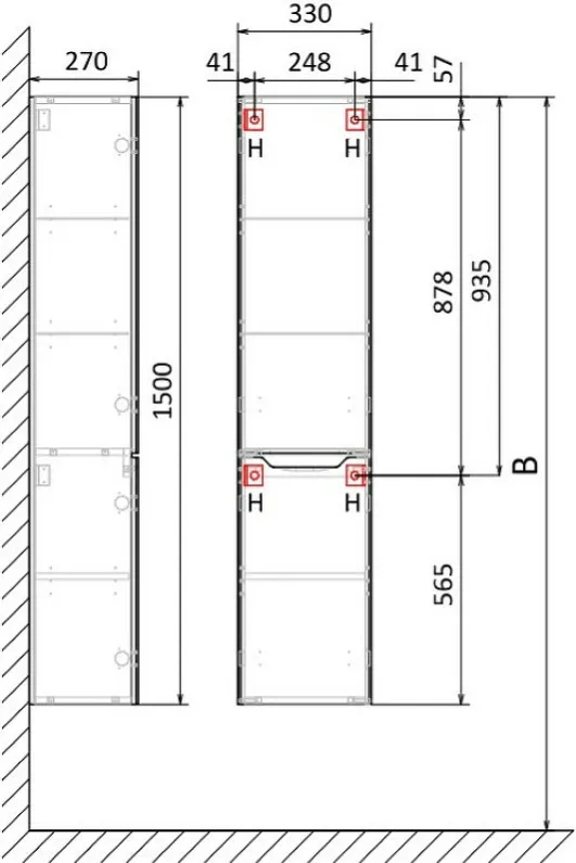 Характеристики товара Шкаф-пенал подвесной Jorno Slide 150 антрацит Sli.04.150/P/A