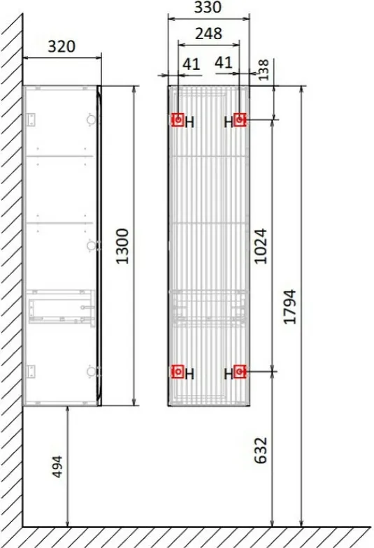 Шкаф-пенал подвесной Jorno Strong 33 антрацит Str.04.130/P/A