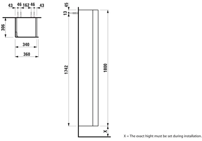 Шкаф-пенал подвесной Laufen INO 36 L тёмный орех 4.2545.1.030.171.1