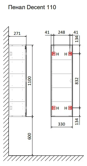 Характеристики товара Шкаф-пенал подвесной Raval Decent 33 антрацит Dec.04.110/P/A/RL