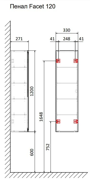 Характеристики товара Шкаф-пенал подвесной Raval Facet 33 антрацит Fac.04.120/P/A/RL