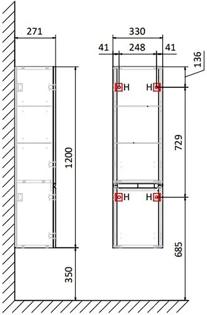 Характеристики товара Шкаф-пенал подвесной Raval Welto 33 белый Wel.04.120/P/W/RL