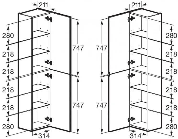КОМПЛЕКТАЦИЯнавесы к стене - 2шт, навесы на мебель - 2шт, комплект заглушек, полки стеклянные - 4шт