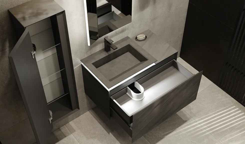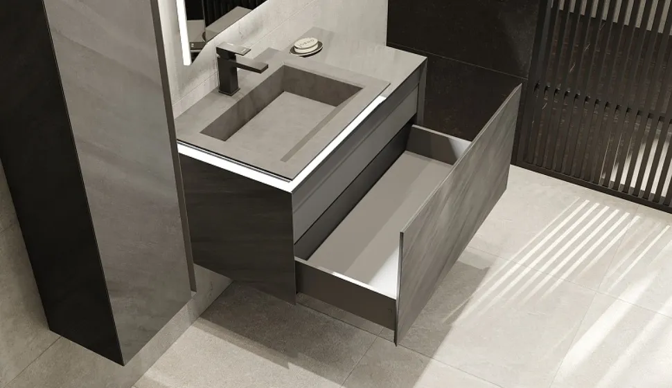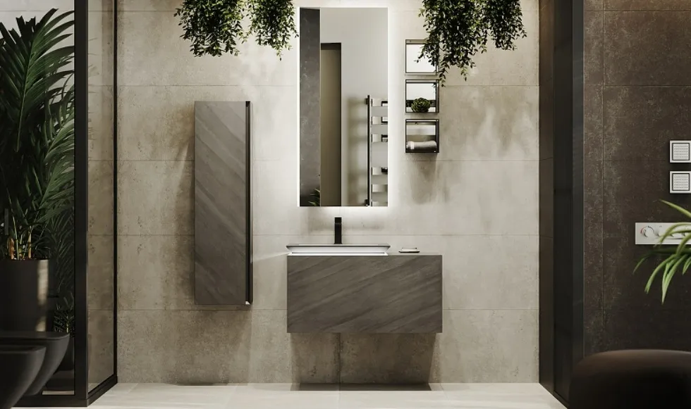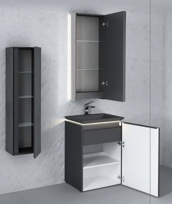 Шкаф-пенал подвесной с зеркалом Jorno Incline 120 бетон Inc.04.120/P/Bet/JR