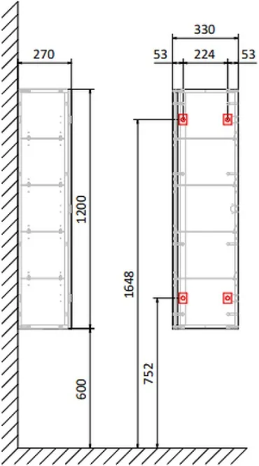 Характеристики товара Шкаф-пенал подвесной с зеркалом Jorno Incline 120 бетон Inc.04.120/P/Bet/JR