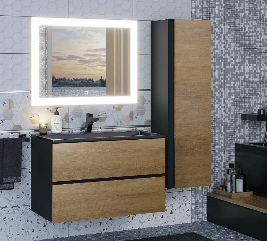 Шкаф-пенал подвесной Uperwood Upd Barsa дуб сонома/чёрный матовый 293020545