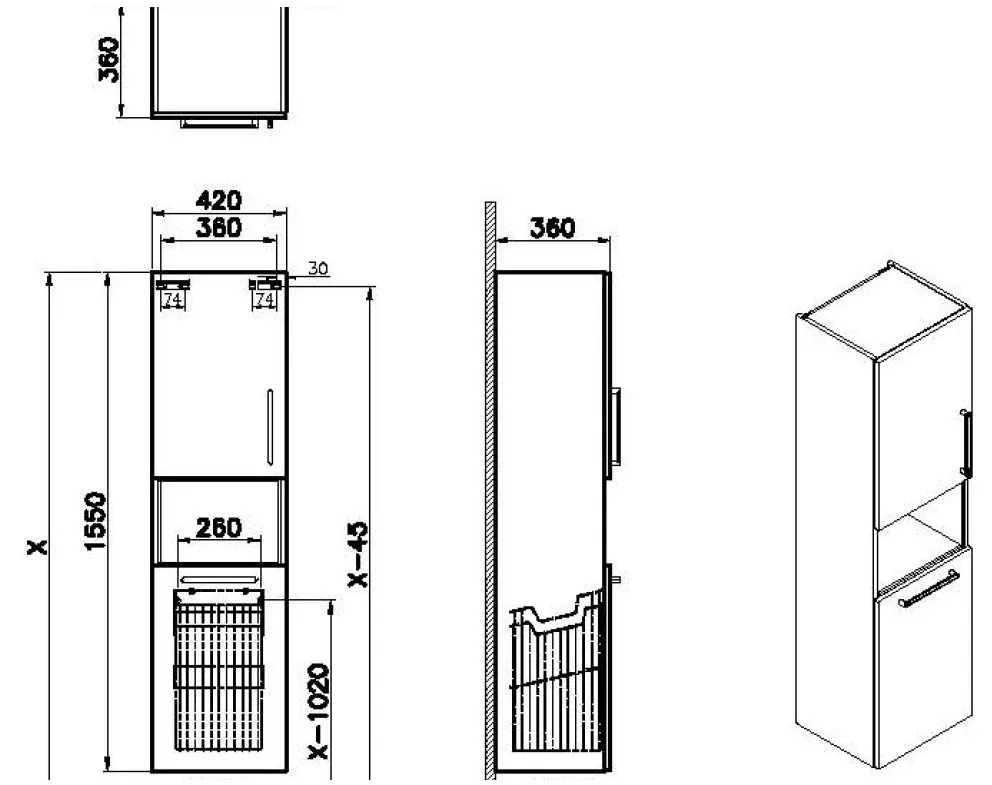 Шкаф-пенал подвесной VitrA Root 40 L кордоба 68009