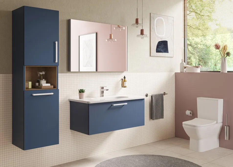 Шкаф-пенал подвесной VitrA Root 40 L тёмно-синий/светлое дерево 68008