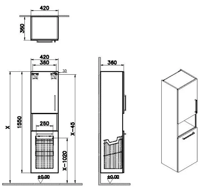 Характеристики товара Шкаф-пенал подвесной VitrA Root 40 L тёмно-синий/светлое дерево 68008