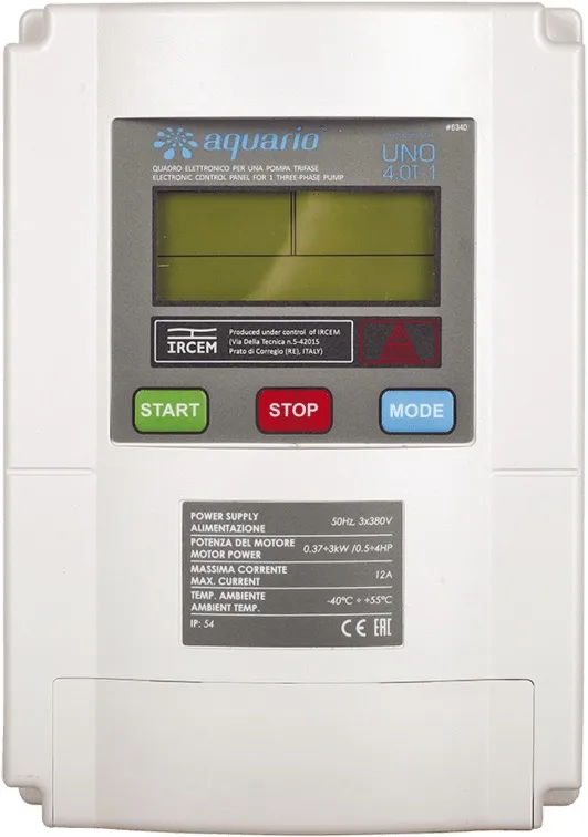 Шкаф управления серии UNO предназначены для управления работой и защиты одного поверхностного или погружного электронасоса, работающего от трехфазной сети 3х380В, 50Гц.