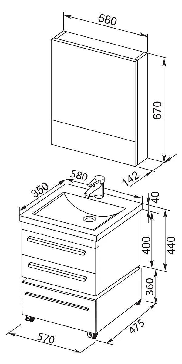 Характеристики товара Шкаф-зеркало Aquanet Нота 58 L чёрный 00169191
