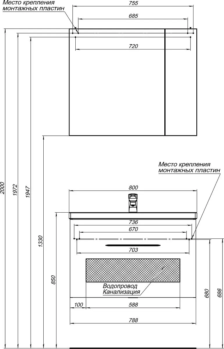 Характеристики товара Шкаф-зеркало Aquanet Порто 80 R белый 00195728