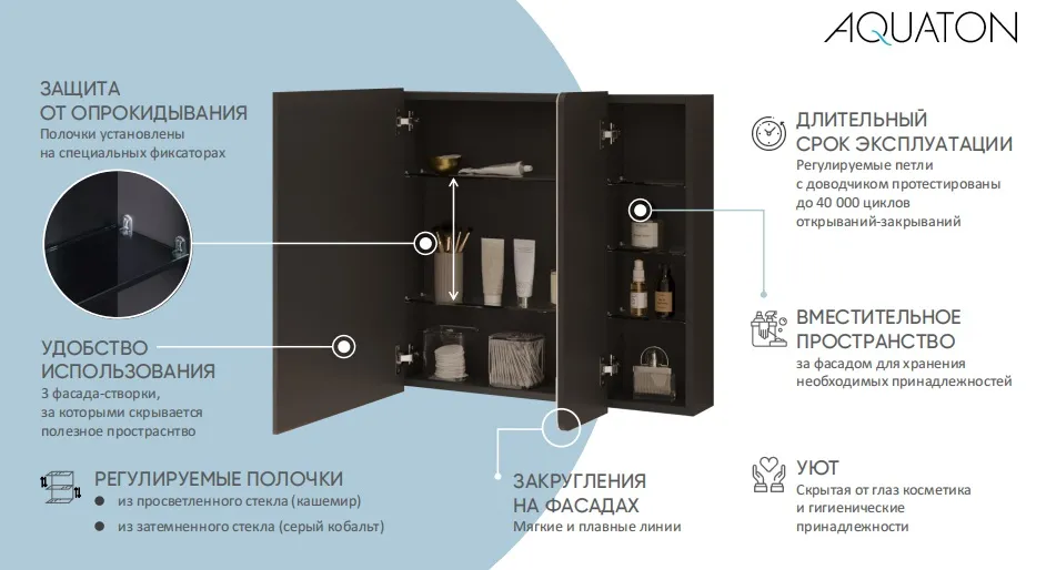 Характеристики товара Шкаф-зеркало Aquaton Ар-Деко 85 кашемир 1A280602DD6E0