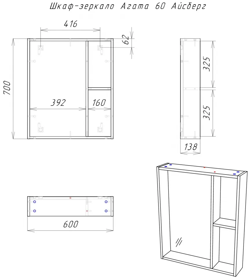 Характеристики товара Шкаф-зеркало Айсберг Агата 60 белый DA6702HZ