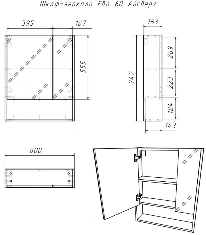 Характеристики товара Шкаф-зеркало Айсберг Ева 60 белый DA5921HZ