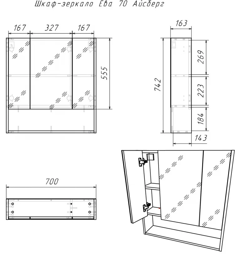 Характеристики товара Шкаф-зеркало Айсберг Ева 70 белый DA5922HZ