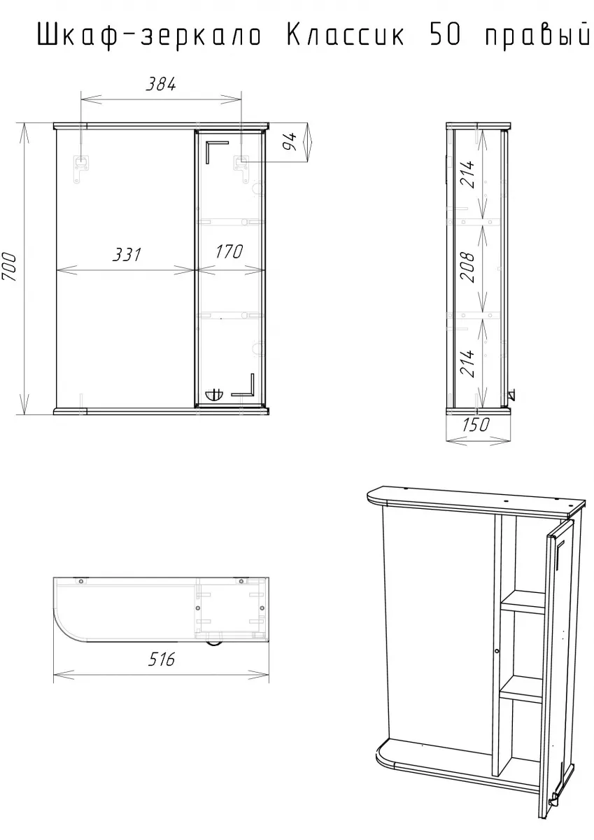 Материал корпусаЛДСП, МДФ, Пленка ПВХ, зеркало