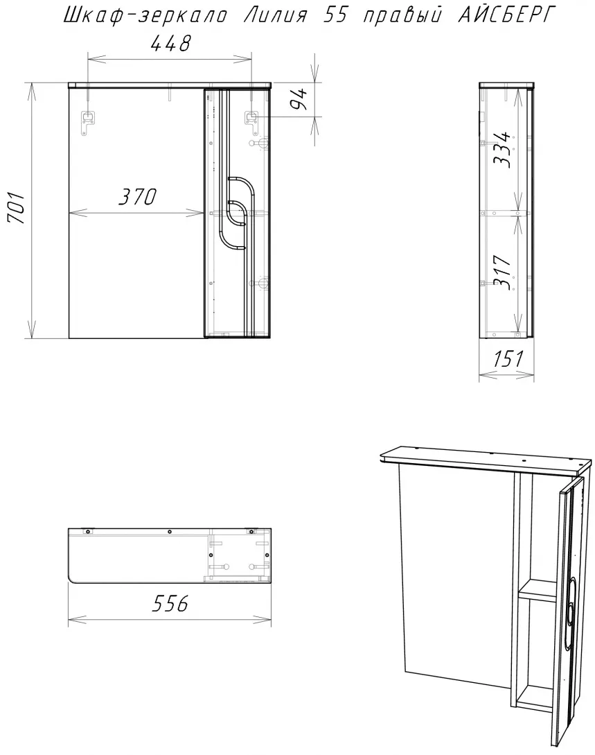 Характеристики товара Шкаф-зеркало Айсберг Лилия 55 R белый DA2007HZ