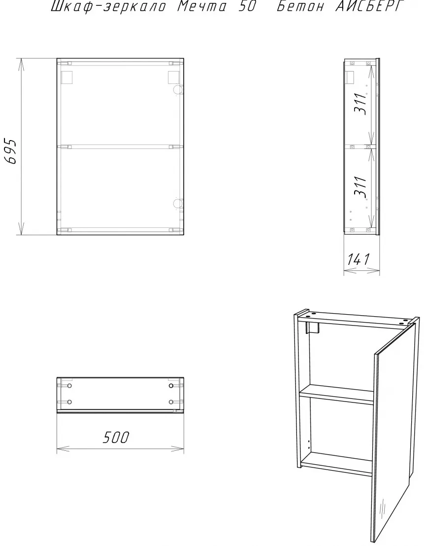 Характеристики товара Шкаф-зеркало Айсберг Мечта 50 бетон DM2337HZ