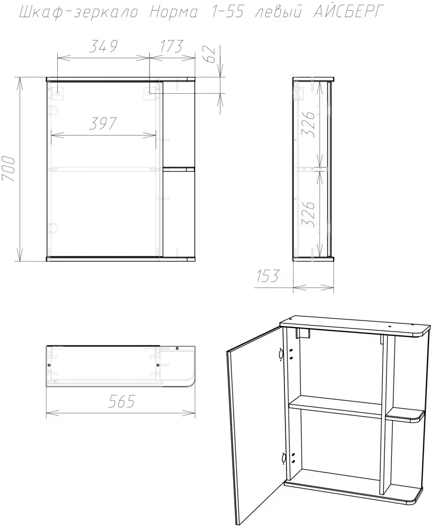 Характеристики товара Шкаф-зеркало Айсберг Норма 1-55 L белый DA1603HZ