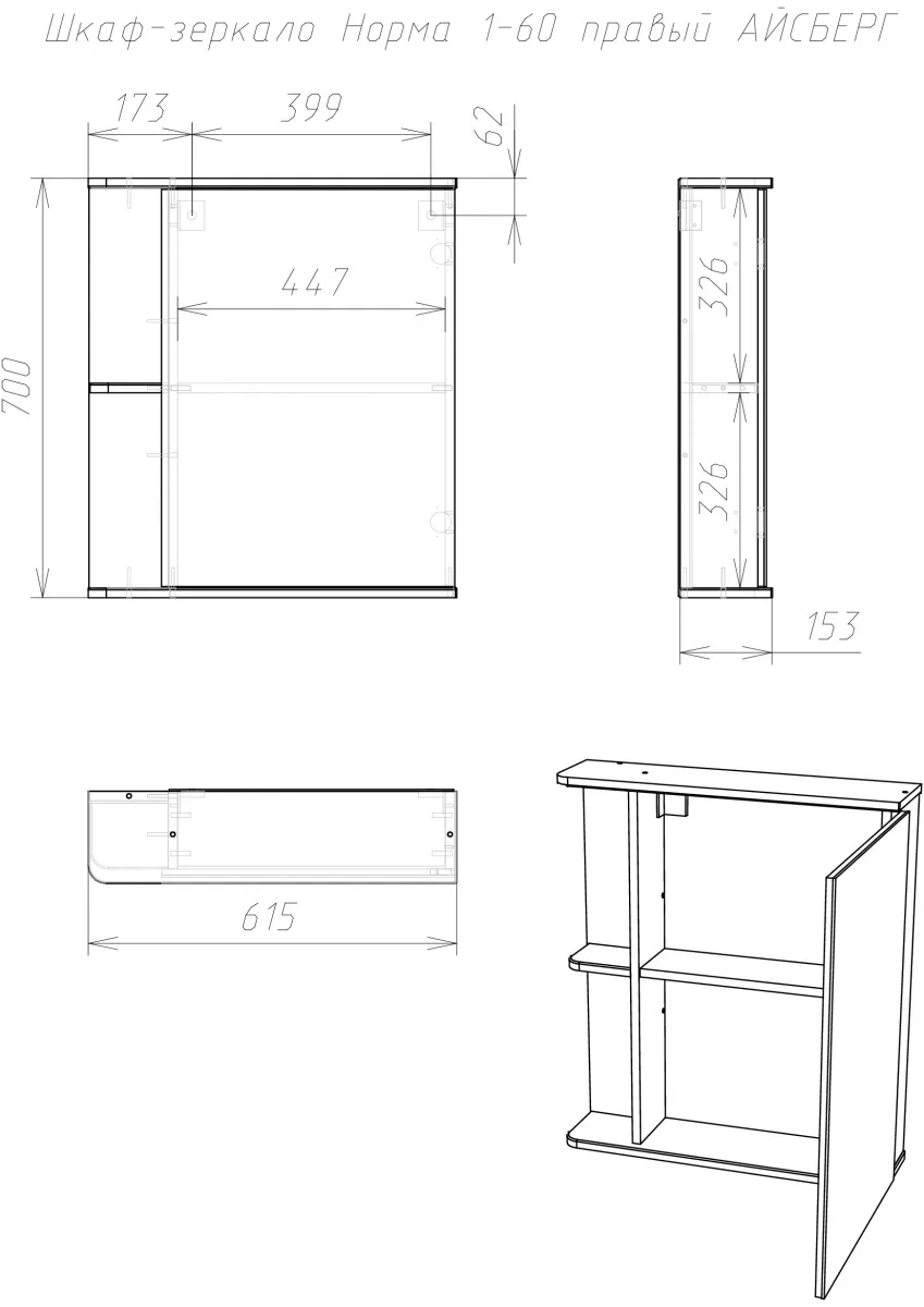 Характеристики товара Шкаф-зеркало Айсберг Норма 1-60 R белый DA1606HZ