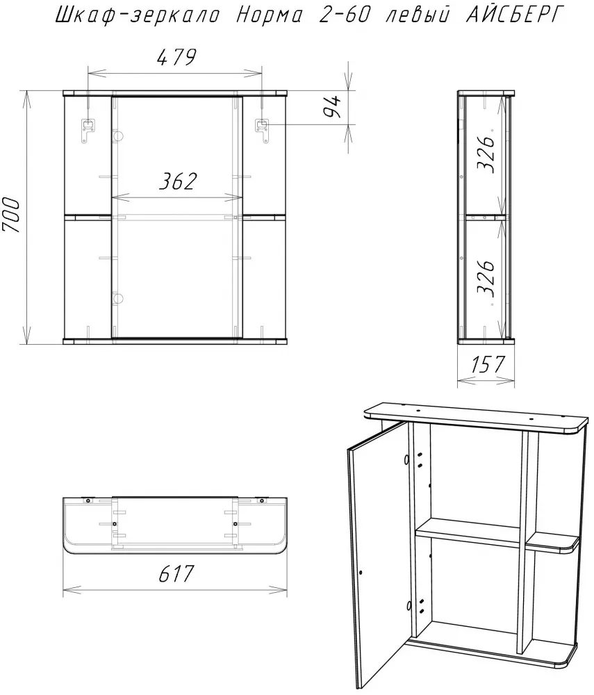 Характеристики товара Шкаф-зеркало Айсберг Норма 2-60 L белый DA1611HZ