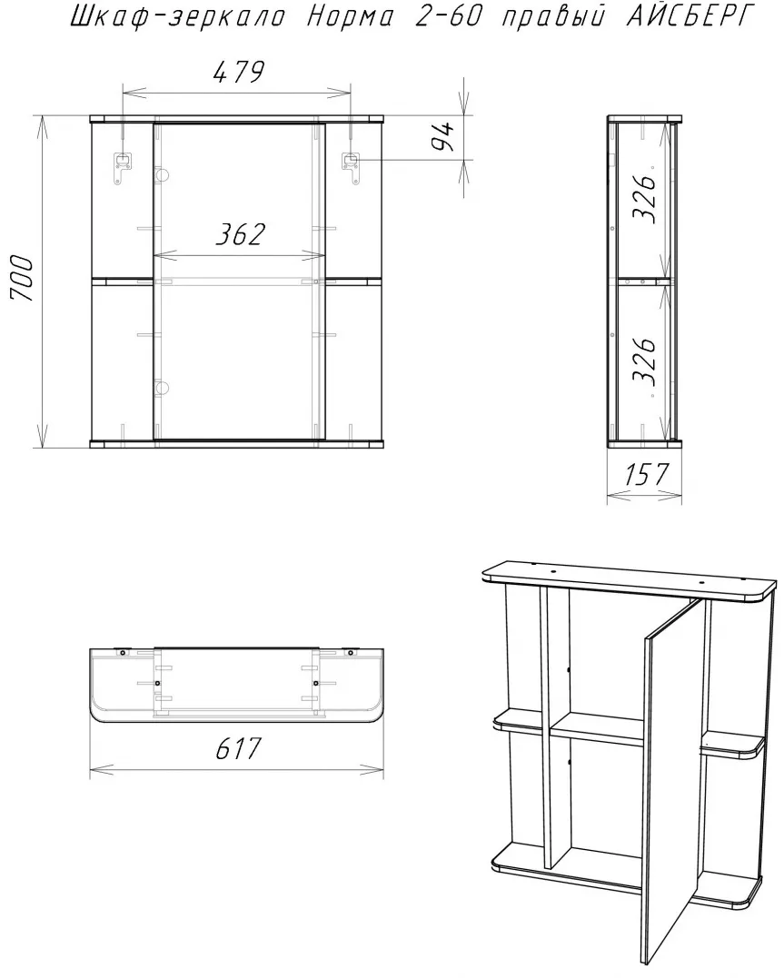 Характеристики товара Шкаф-зеркало Айсберг Норма 2-60 R белый DA1612HZ