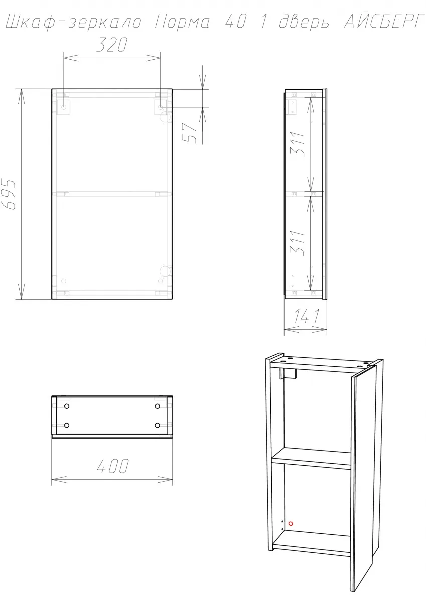 Характеристики товара Шкаф-зеркало Айсберг Норма 40 белый DA1618HZ