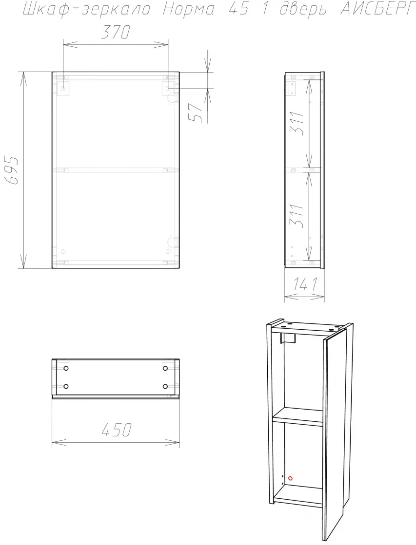 Характеристики товара Шкаф-зеркало Айсберг Норма 45 белый DA1634HZ