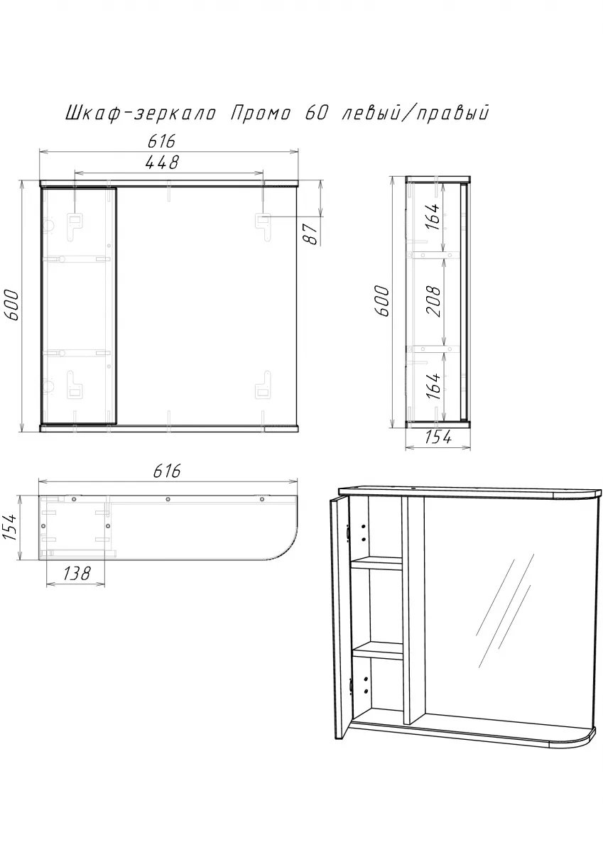 Шкаф-зеркало Айсберг Промо 60 белый DP2608HZ