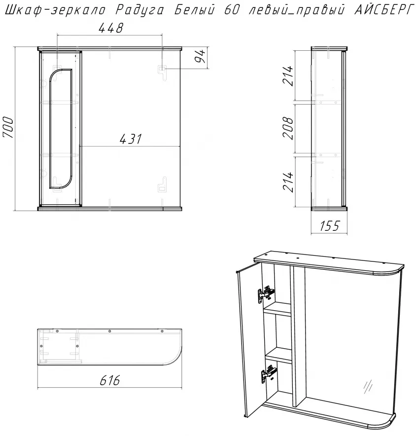Характеристики товара Шкаф-зеркало Айсберг Радуга 60 белый DA1139HZR