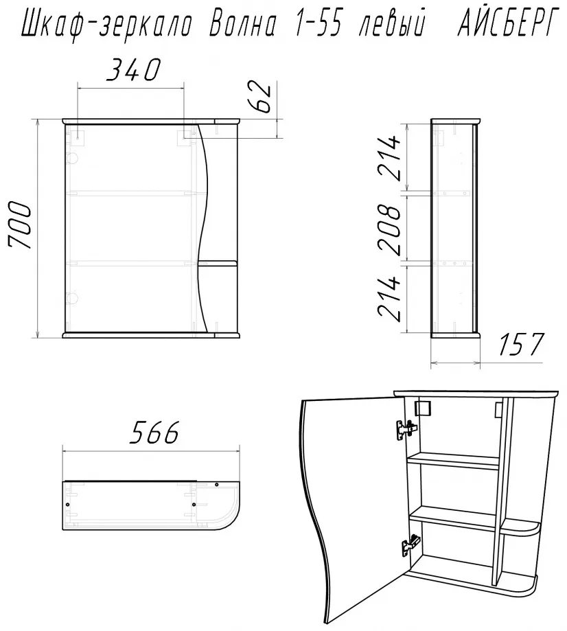 Характеристики товара Шкаф-зеркало Айсберг Волна 1-55 L белый DA1032HZ