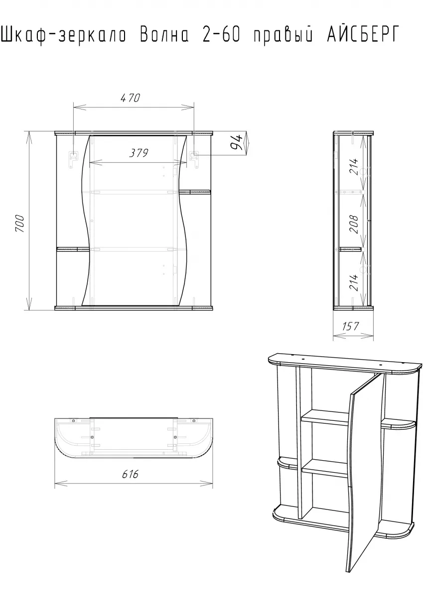 Характеристики товара Шкаф-зеркало Айсберг Волна 2-60 R белый DA1041HZ