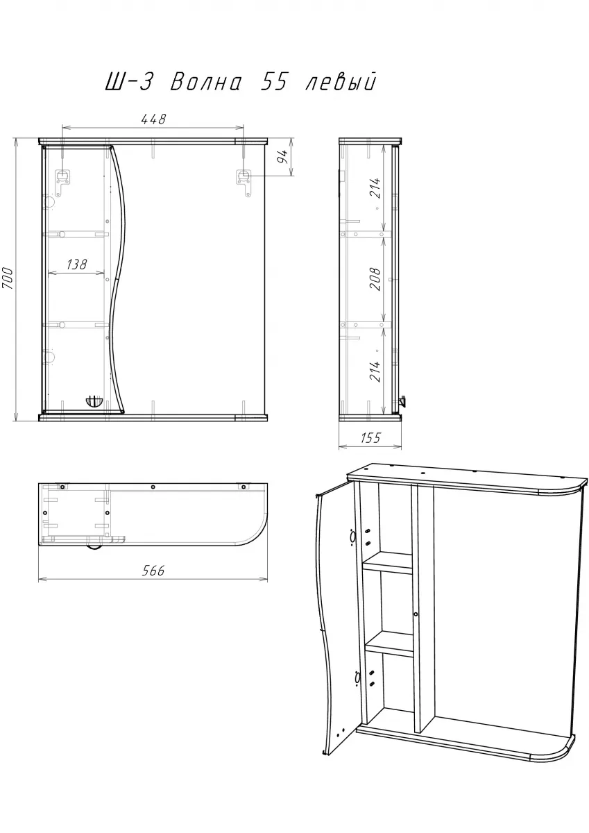 Материал корпусаЛДСП, МДФ, Пленка ПВХ, зеркало