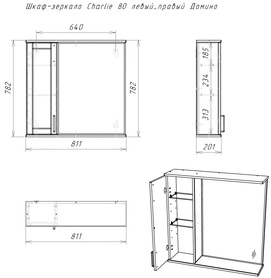 Характеристики товара Шкаф-зеркало Домино Charlie 80 L белый DCh2516HZ