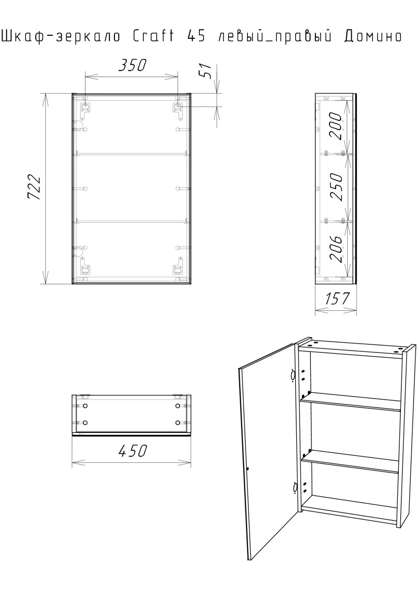 Характеристики товара Шкаф-зеркало Домино Craft 45 дуб вотан DCr2211HZ