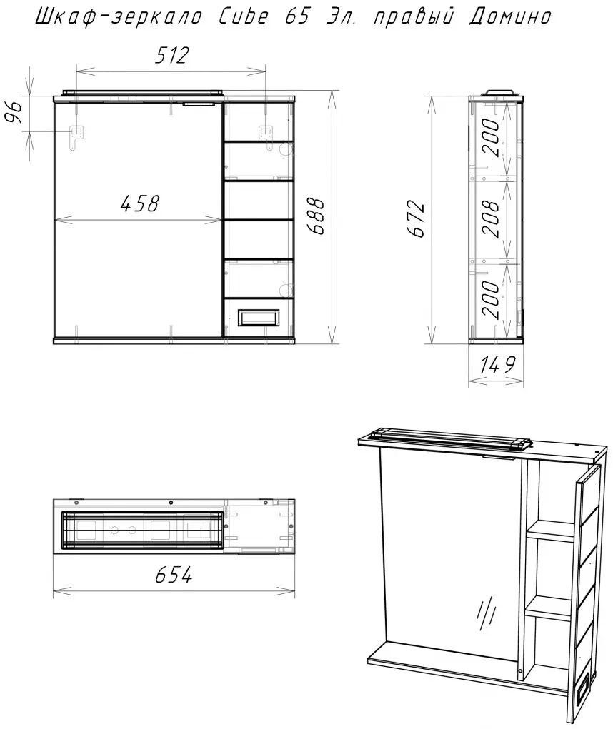 Характеристики товара Шкаф-зеркало Домино Cube 65 R белый DC5007HZ