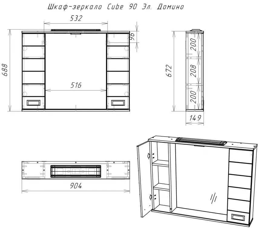 Характеристики товара Шкаф-зеркало Домино Cube 90 белый DC5012HZ
