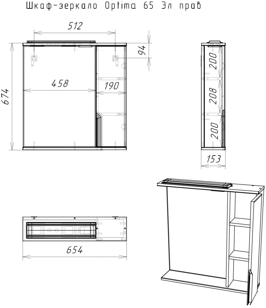 Характеристики товара Шкаф-зеркало Домино Optima 65 R белый DO1907HZ