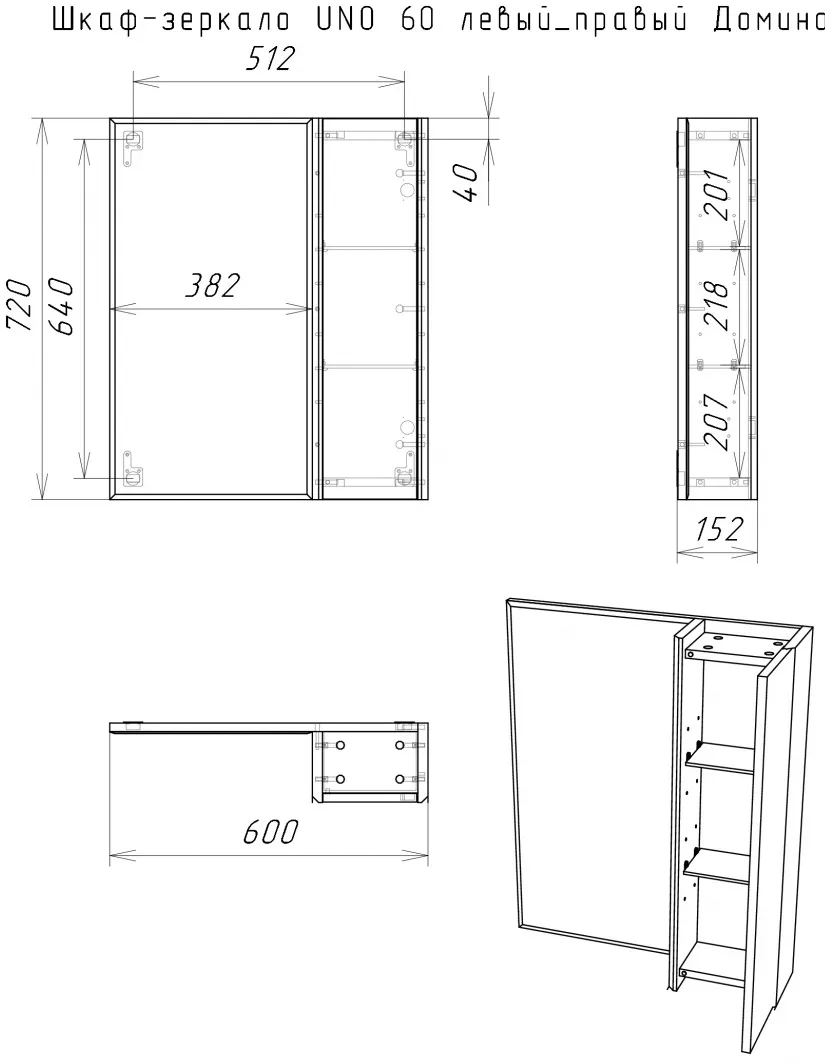 Характеристики товара Шкаф-зеркало Домино Uno 60 дуб вотан/белый DU1512HZ